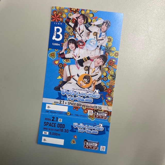 れんてつワンマンライブ「きゃわイノベーションフォーラム2025」の紙チケットです。 【概要】 れんてつワンマンライブ きゃわイノベーションフォーラム2025 日時:2026年2月1日(日) OPEN 18:00/START 18:30 場所:代官山SpaceOdd https://spaceodd.jp/access/ 〒150-0033 東京都渋谷区猿楽町2-11 氷川ビル1F 「JR渋谷駅」西口から徒歩約11分 ワンマンライブの詳細→https://rentetsu.net/20260201oneman/ チケット特典について ▶Sチケット ¥25,000→先行販売にて完売いたしました。 優先入場/最前エリア/物販チェキ列特急券∞/メモリアルなグッズ/後日れんてつかふぇで開催されるアフターパーティーご招待 その他追加特典あるかもです(減ることはないです) ▶Aチケット ¥11,000 優先入場/最前エリア/物販チェキ列特急券×4/メモリアルなグッズ その他追加特典あるかもです(減ることはないです) ▶Bチケット ¥5,000 特典:メモリアルなグッズ その他追加特典あるかもです(減ることはないです) ▶Cチケット ¥¥3,000 普通のチケット。もちろんたっぷり楽しめる! ▶特別企画乗車券 ¥1,000 れんてつが11/29(土)よりライブ物販でのみ手売りする、れんてつ歴がまだ浅い人へのおすすめチケットとして販売いたします。お友達のご招待とかにもいいね!