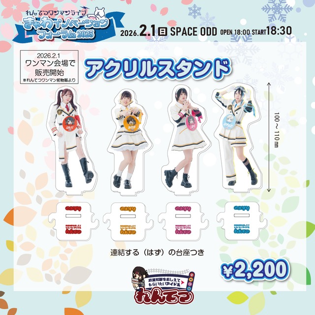 れんてつのワンマンの日に販売開始されたれんてつアクリルスタンド。 台座は並型連結器をイメージしたデザイン。 メンバー各種¥2,200(税込)