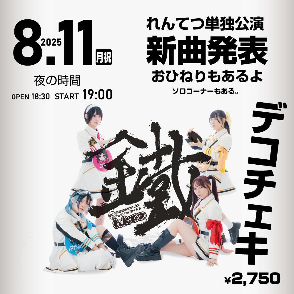 2025年8月11日(月祝)に開催される 2部『れんてつ単独公演~新曲発表~』のデコチェキです。