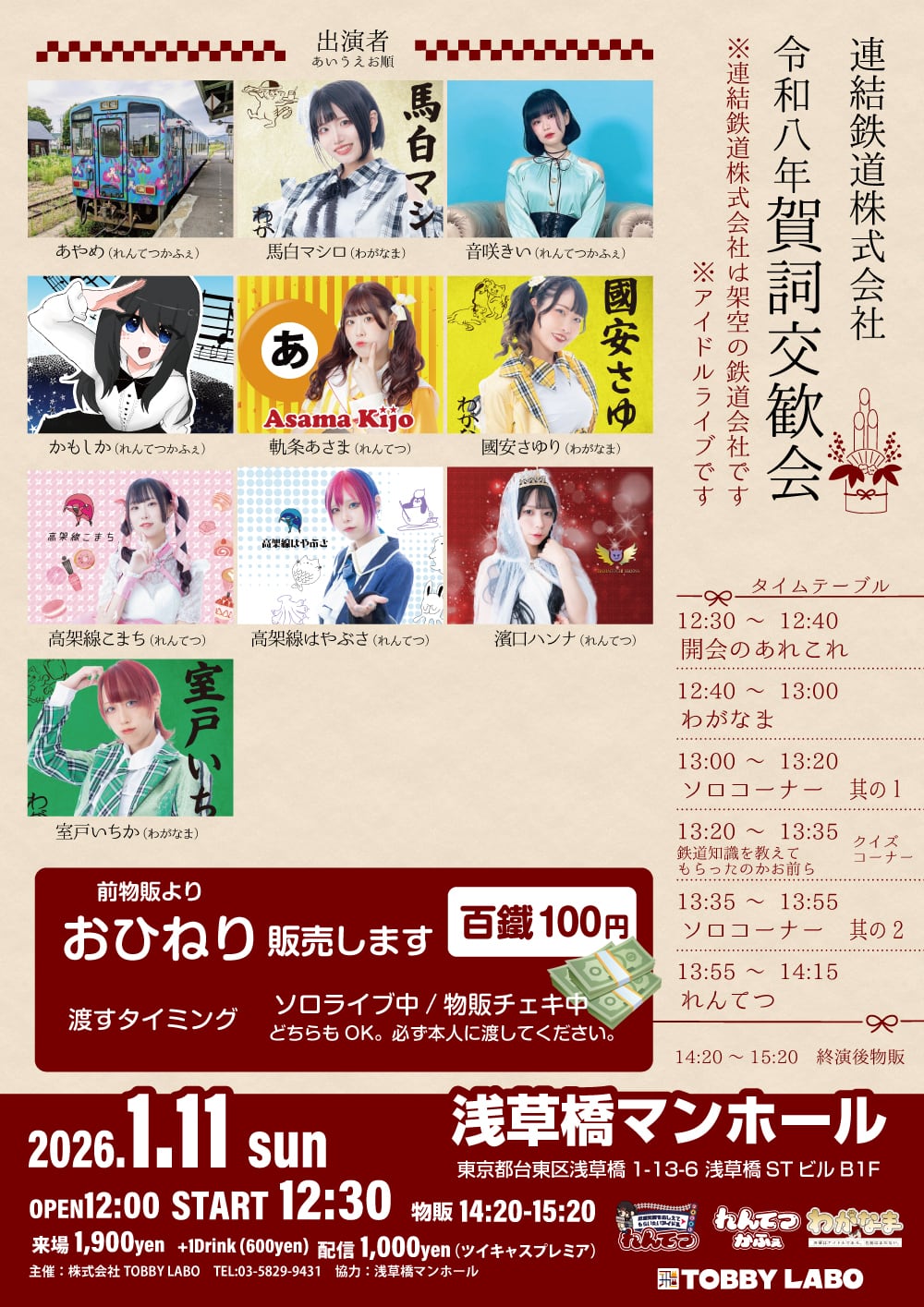 出演者 あやめ/音咲きい/かもしか/國安さゆり(わがなま)/室戸いちか(わがなま)/馬白マシロ(わがなま)/濵口ハンナ(れんてつ)/軌条あさま(れんてつ)/高架線こまち(れんてつ)/高架線はやぶさ(れんてつ)
