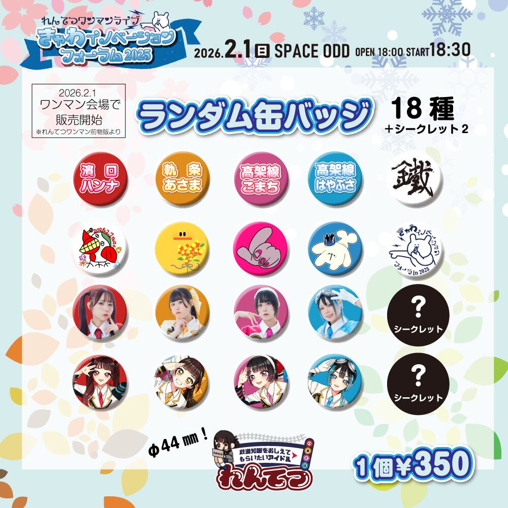 れんてつのワンマンの日に販売開始されたれんてつランダム缶バッチ。