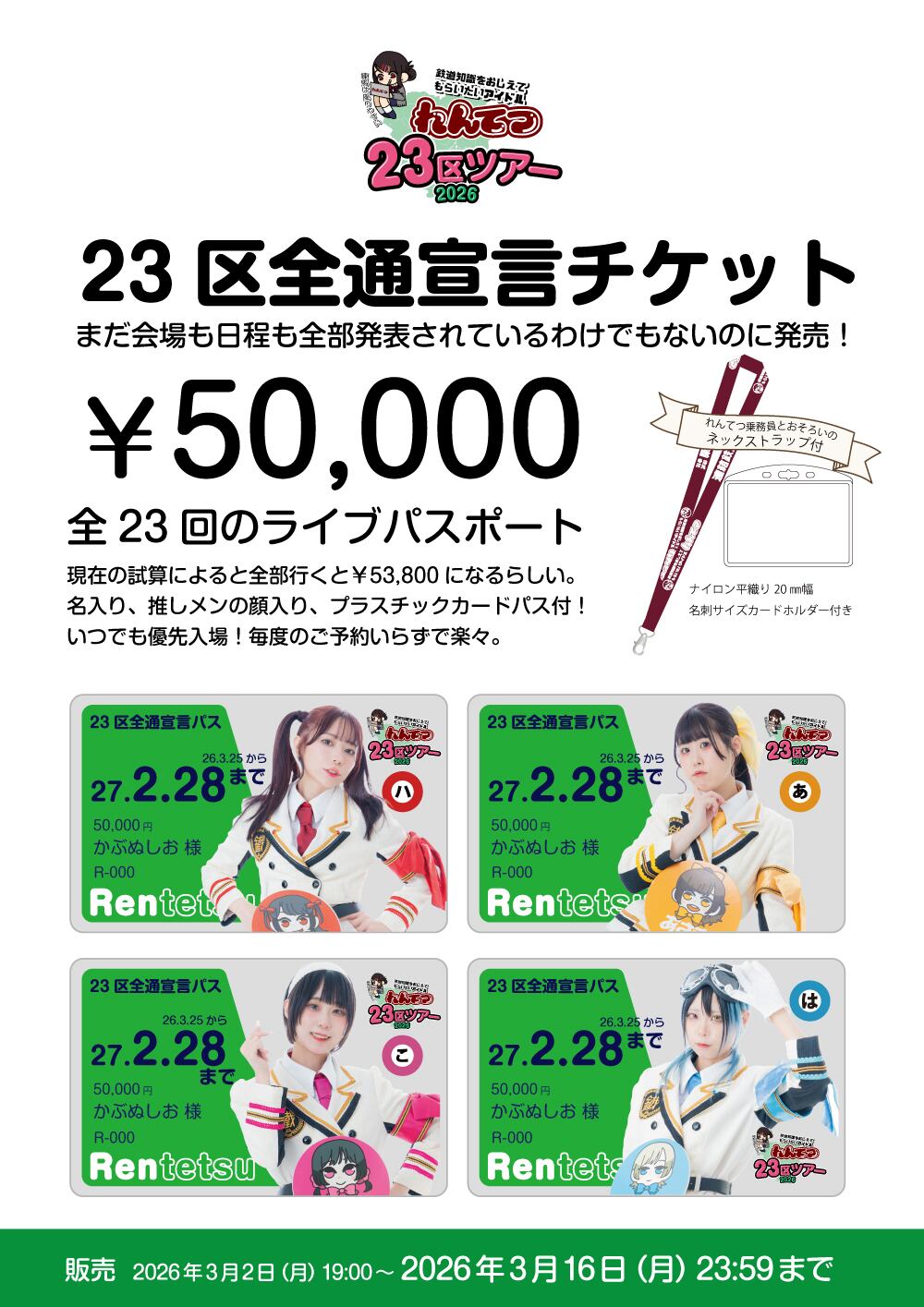 お名前、推しメンの顔入り、プラスチックカードパス付!