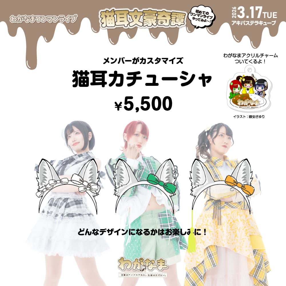 わがなま初めてのワンマンライブにて発売される、メンバーカスタム猫耳カチューシャです。