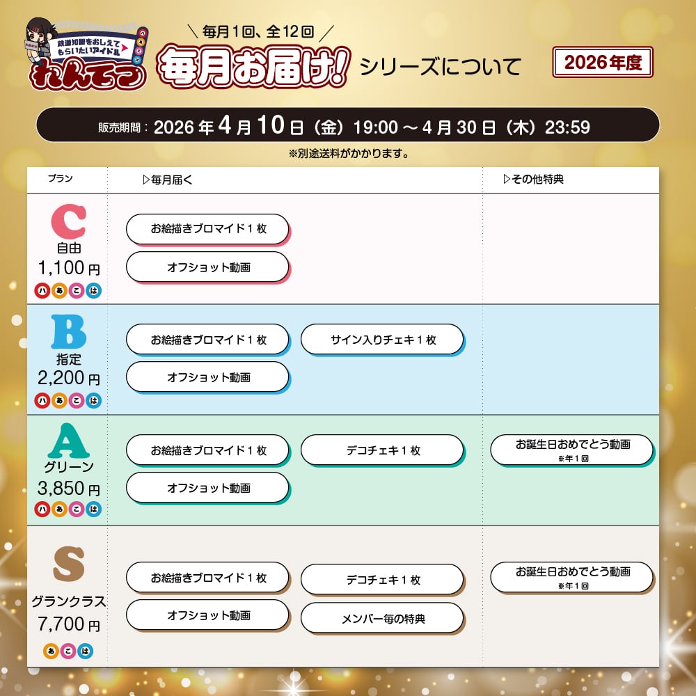 ※2026年4月~2027年3月まで毎月ブロマイドなどのグッズをお届けいたします。