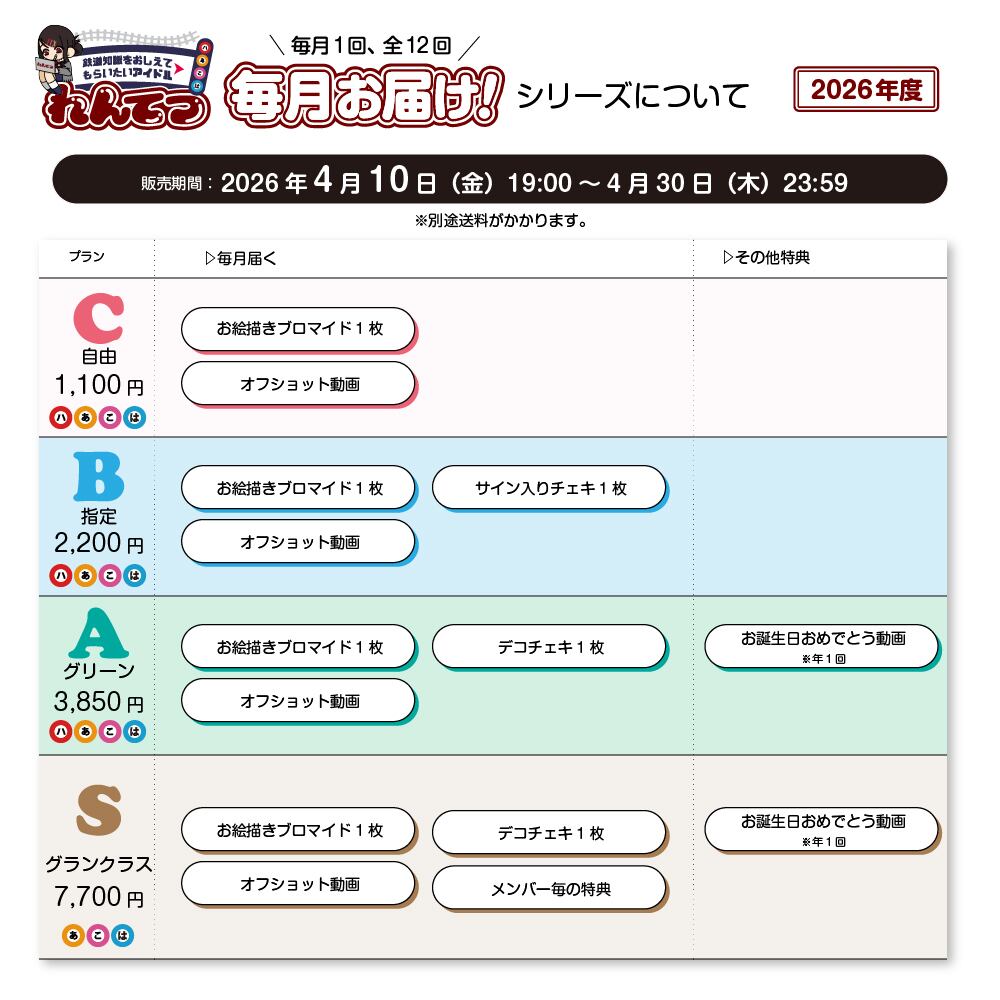 ※2026年4月~2027年3月まで毎月ブロマイド等のグッズをお届けいたします。