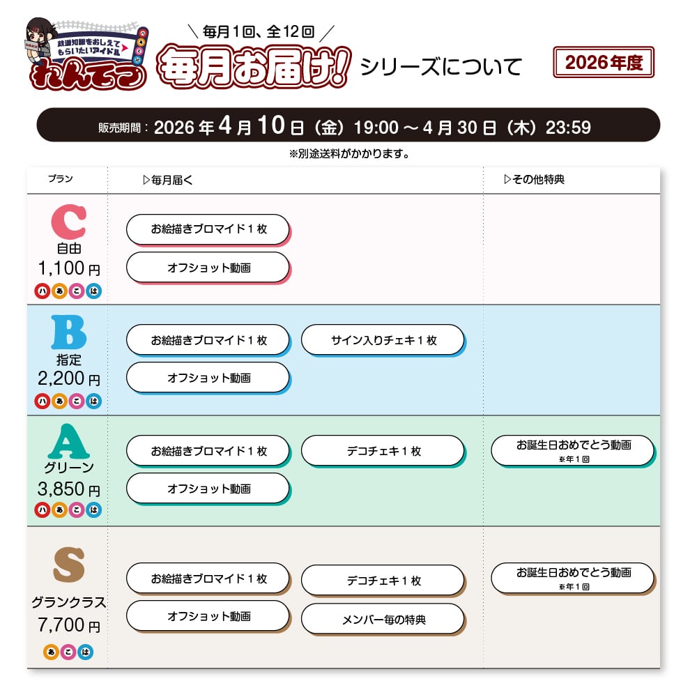 ※2026年4月~2027年3月まで毎月ブロマイド等のグッズをお届けいたします。