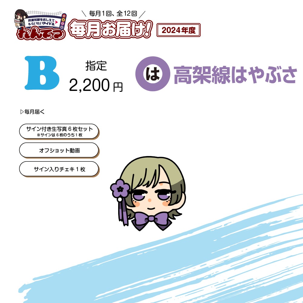 ※2024年4月~2025年3月まで毎月生写真等のグッズをお届けいたします。