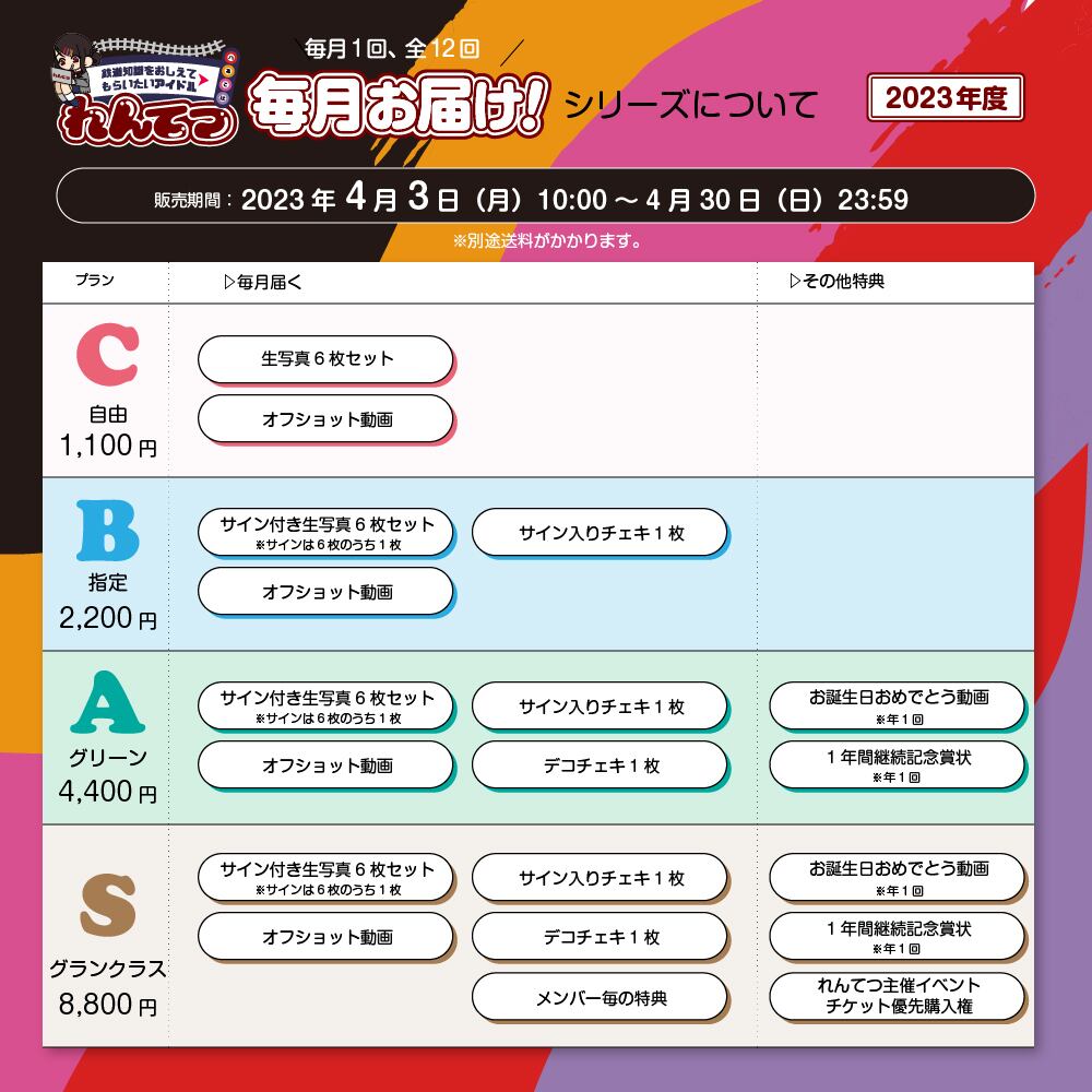 ※2024年4月~2025年3月まで毎月生写真等のグッズをお届けいたします。